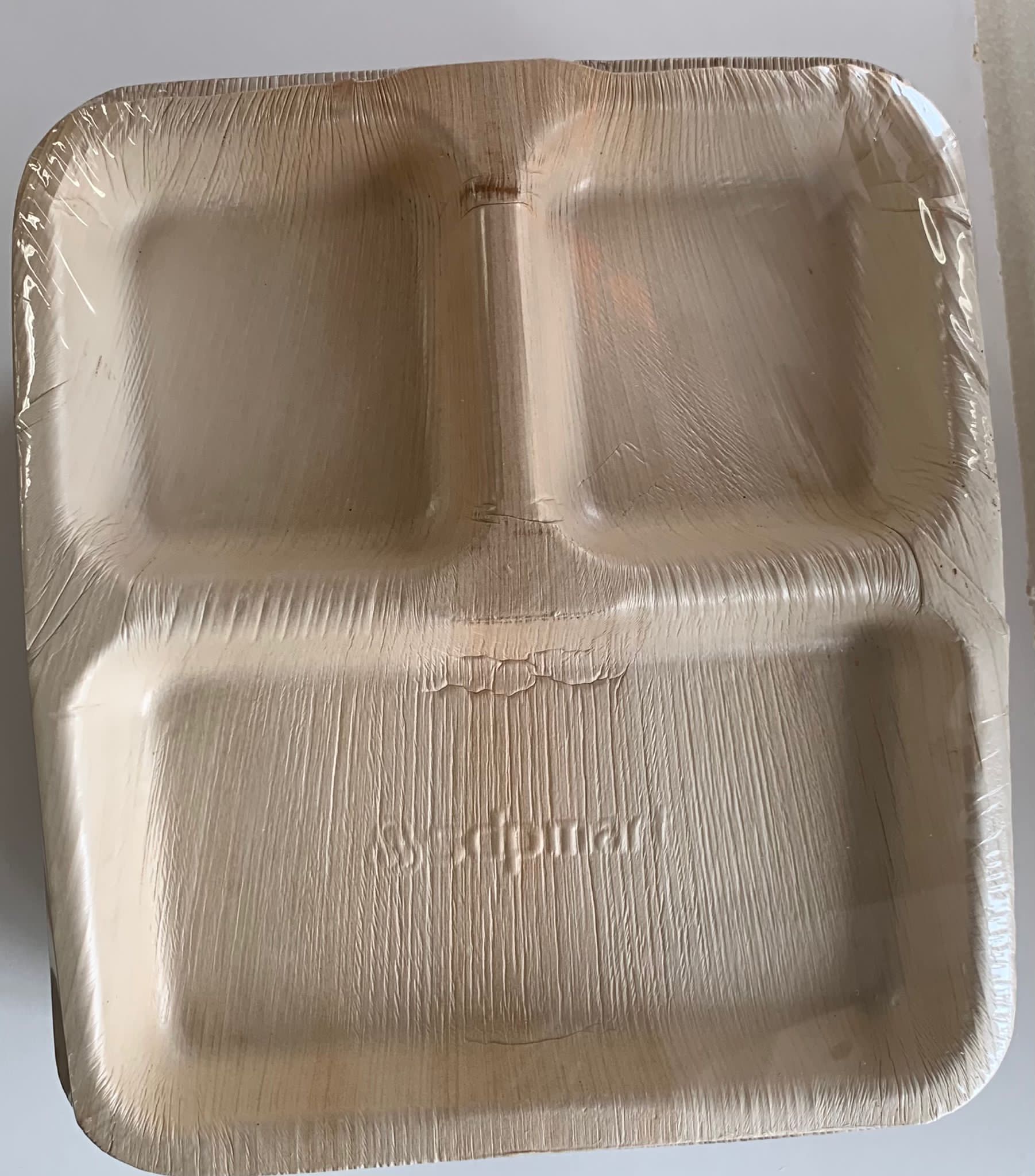 Eco-Friendly Disposable Rec Plates in 3Comp - 8 x 9" (Pack of 25 Pcs)