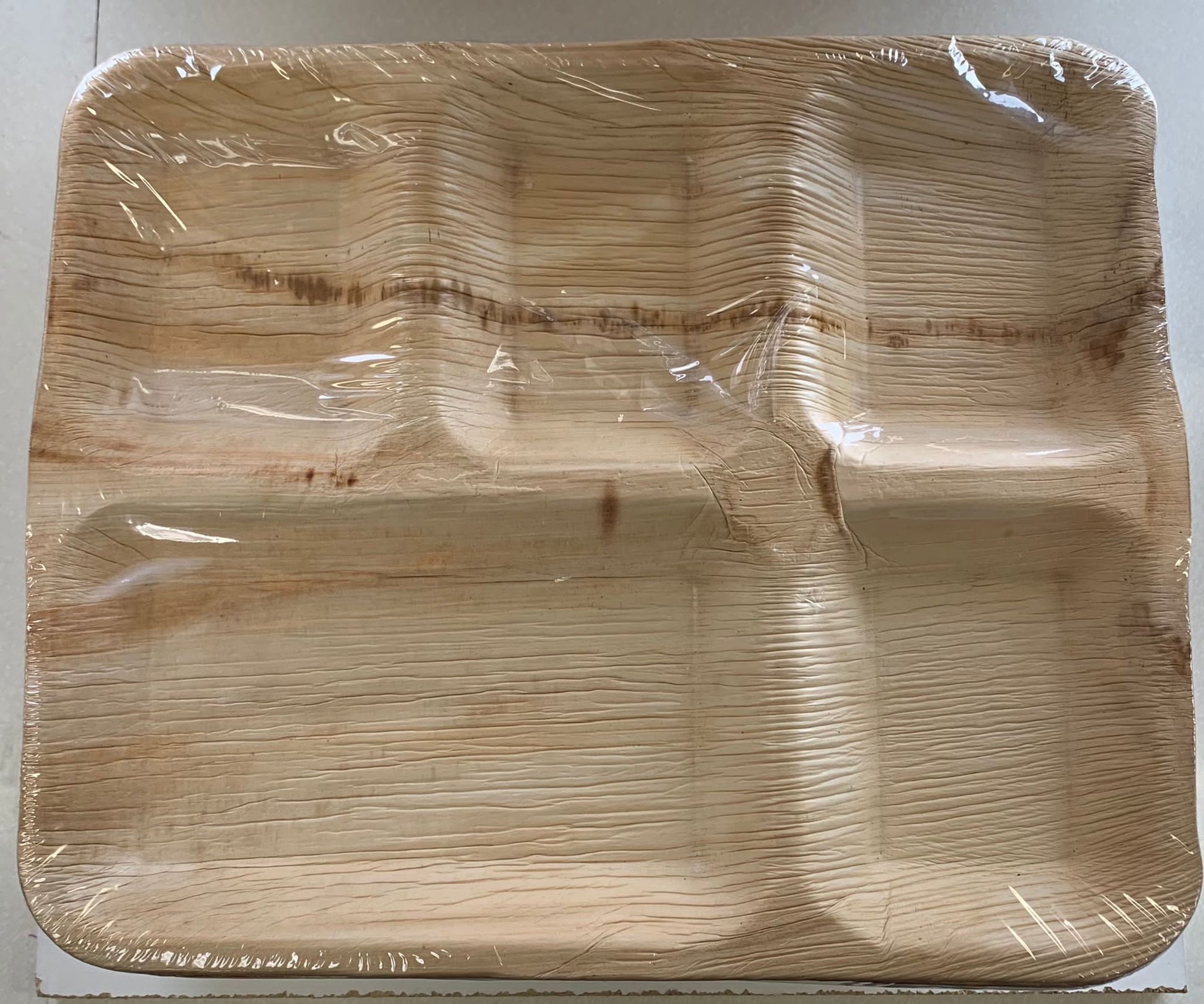Fallen Palm/Areca leaves are cleaned using water, pressed to shape differently using heat, and decomposes over a short period of time.